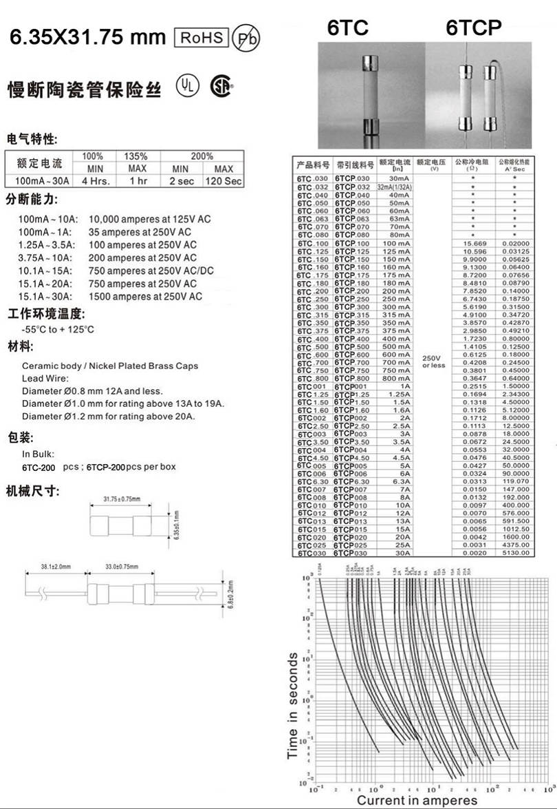 6.35X31.75陶瓷慢斷保險(xiǎn)絲