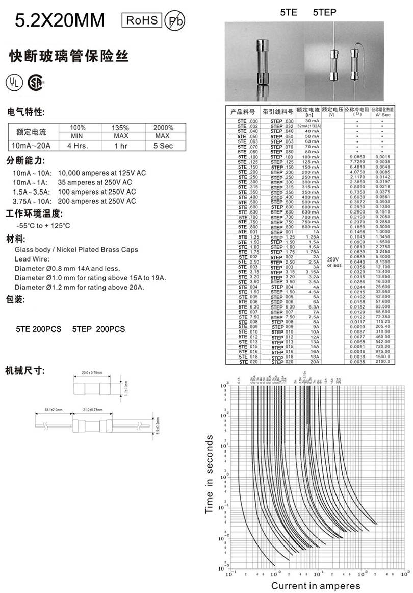 5.2X20mm玻璃快斷保險(xiǎn)絲