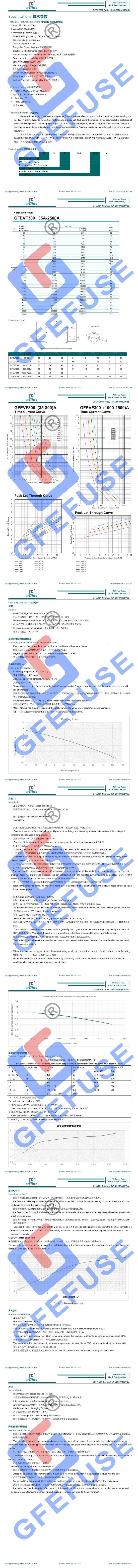 本系列電動汽車直流熔斷器使用于額定電壓DC/AC 250V~300V,額定電流35~2500A,熔斷器容量為20kA~50kA,適用于電動汽車電池,電池增加容量,直流電源,產品符合 GB/T31465.1-2015和GB/T31465.6-2017標準。