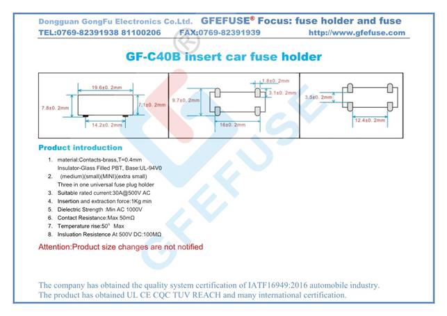 歡迎來(lái)到- 東莞市貢福電子有限公司 的官方網(wǎng)站, 汽車(chē)熔斷器、保險(xiǎn)絲、電流保險(xiǎn)絲、保險(xiǎn)絲座!