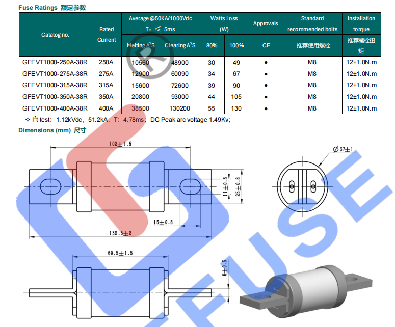 GFEVT1000-38R高速熔斷器(250A-400A)1000Vdc